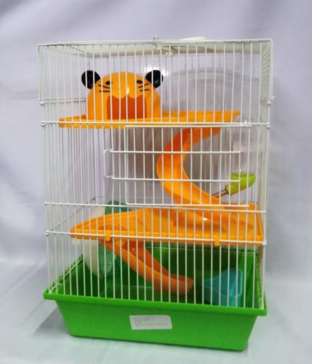 JAULA CON BASE DE PLÁSTICO RESISTENTE A GOLPES Y MALLA DE METAL EN LA PARTE SUPERIOR,100% LAVABLE,CON TOLVA DE ALIMENTACIÓN PARA EL HENO